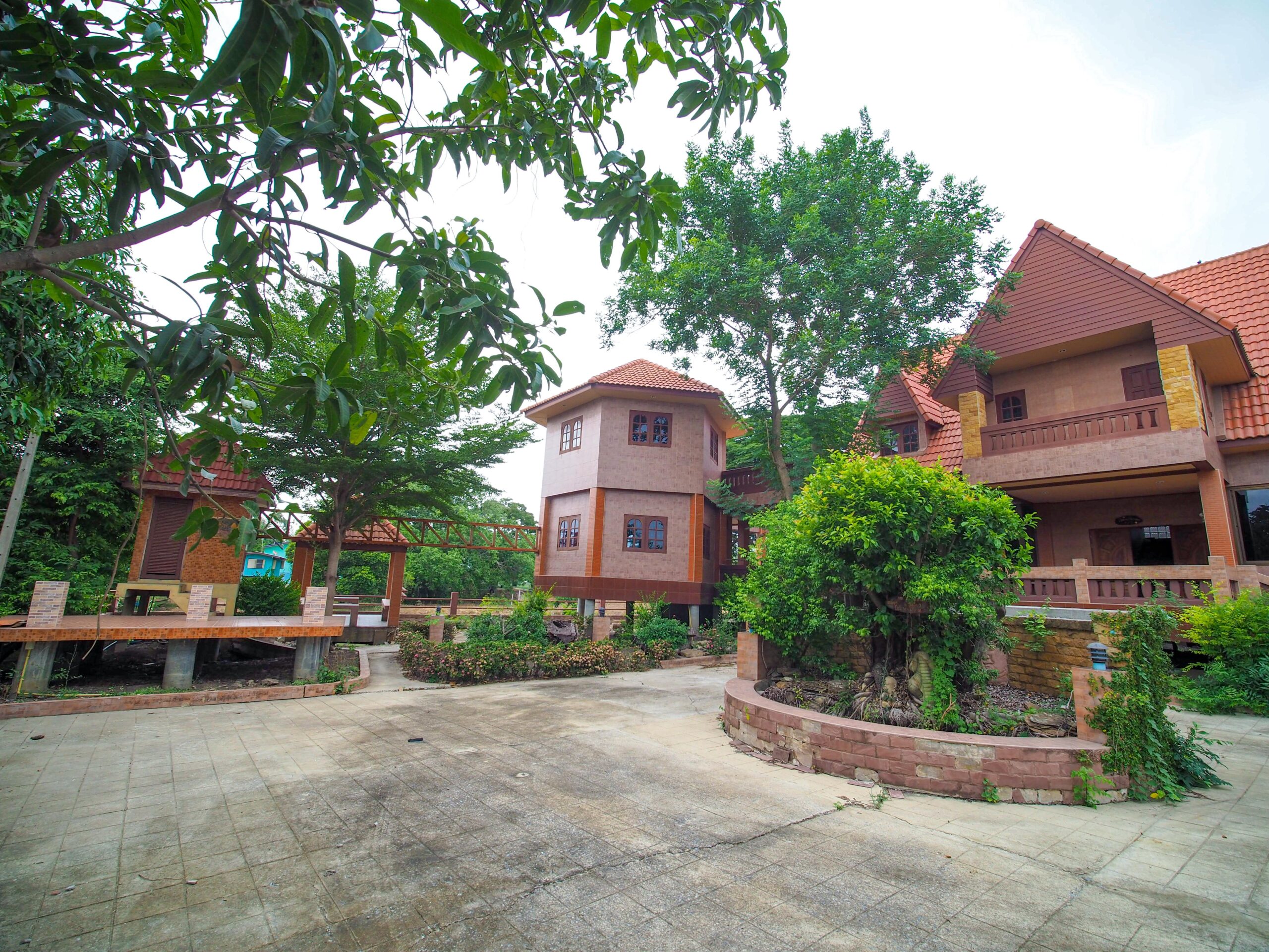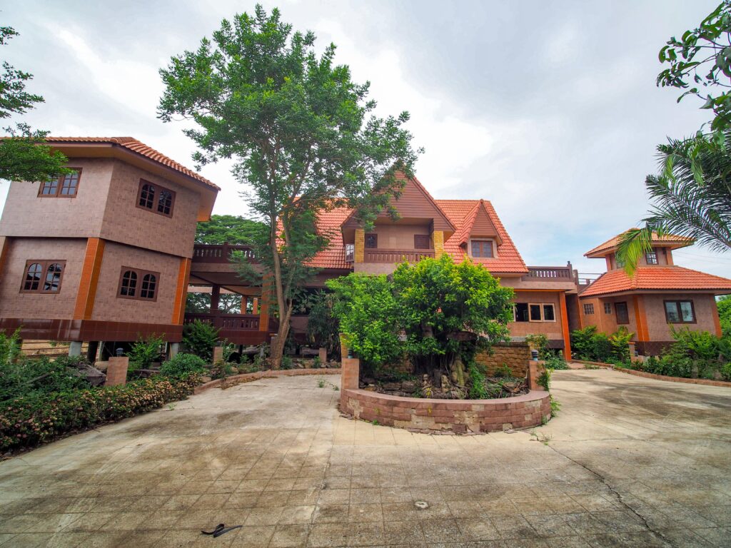 ภายในบริเวณบ้านประกอบไปด้วย อาคารริมน้ำขนาดใหญ่ ศาลาริมน้ำ และเวทีริมน้ำ, อาคารอเนกประสงค์ขนาดใหญ่พร้อมห้องโถงกลาง, เรือนรับรองขนาดเล็ก 2 ชั้น และยังมีร้านกาแฟอยู่ที่ด้านหน้าด้วย รวมห้องพักส่วนตัว 15 ห้อง หรือสามารถประยุกต์ห้องอเนกประสงค์ให้เป็นห้องนอนเพิ่มเติมได้ รีสอร์ทสามารถรับแขกได้ประมาณ 50-100 คน บรรยากาศริมน้ำเงียบสงบ อากาศดี เย็นสบาย มีความเป็นส่วนตัว เหมาะสำหรับการพักผ่อนเป็นอย่างมาก และห่างจากตัวอำเภอเสนาเพียง 10 นาที เท่านั้น **รีสอร์ทควรได้รับการรีโนเวทก่อนเปิดใช้งานอีกครั้ง**